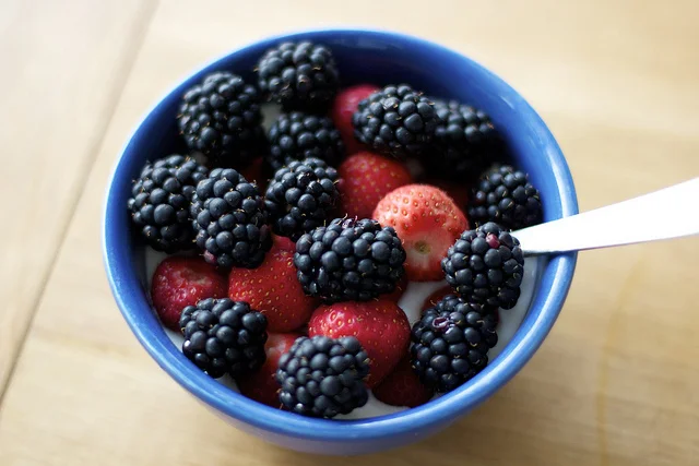 Or, if you think cutting up fruit takes too long or is a bit plain for you, try serving the yoghurt with canned fruit in juice (not syrup)
